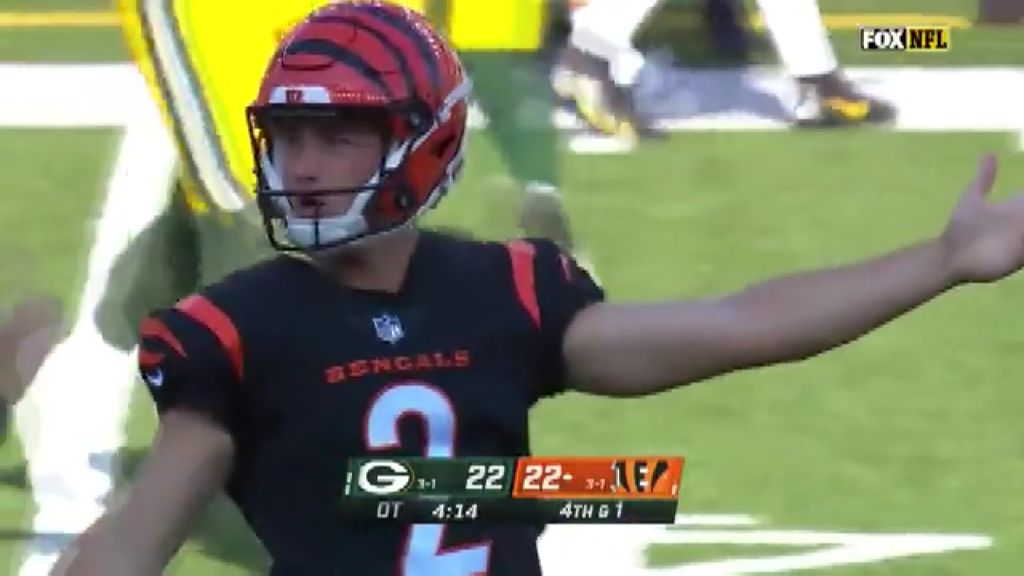 Bengals Opt to Kick on 4th and 1. Green Bay Packers kicker Mason Crosby 2 kicks a winning field goal from the hold of Corey Bojorquez during overtime in an NFL football game against the. Evan McPherson Kick 0.